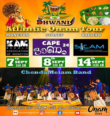 Mathew - A talented musician has brought the rich tradition of Kerala’s Chendamelam to Atlantic Canada by training 30 individuals in the art of playing the Chenda, forming the region’s first-ever Chendamelam troupe. With dedication and passion, they introduced this vibrant percussion tradition to a diverse group, fostering cultural pride among the Indian community and sparking interest among Canadians. This initiative not only preserves a centuries-old art form but also builds a bridge between cultures, uniting people through the universal rhythm of music.